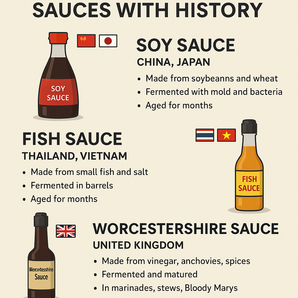 Salsas con historia: salsa de soja, salsa de pescado y salsa Worcestershire